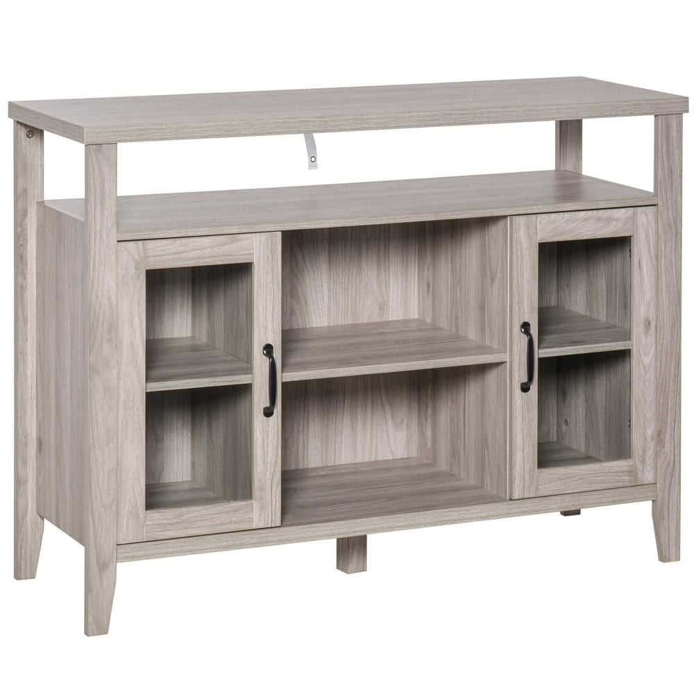 - Framed, tempered glass doors for displaying decorative dishware or other items