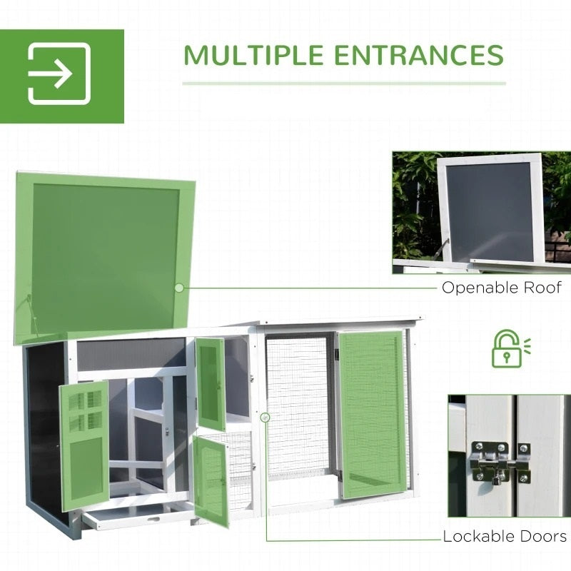 This wooden chicken coop is the perfect combo of safety and freedom and offers all the comfort of a cozy home for your feathered friends - great for bunnies too! A quaint indoor space and spacious courtyard area offers plenty of room to hop around. Lockable front-facing openings provide easy access for cleaning, feeding and other routine tasks.