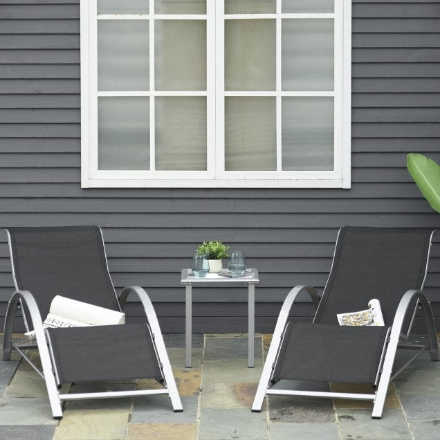 This modern and stylish lounge chair set is the perfect addition to your outdoor space this spring and summer!