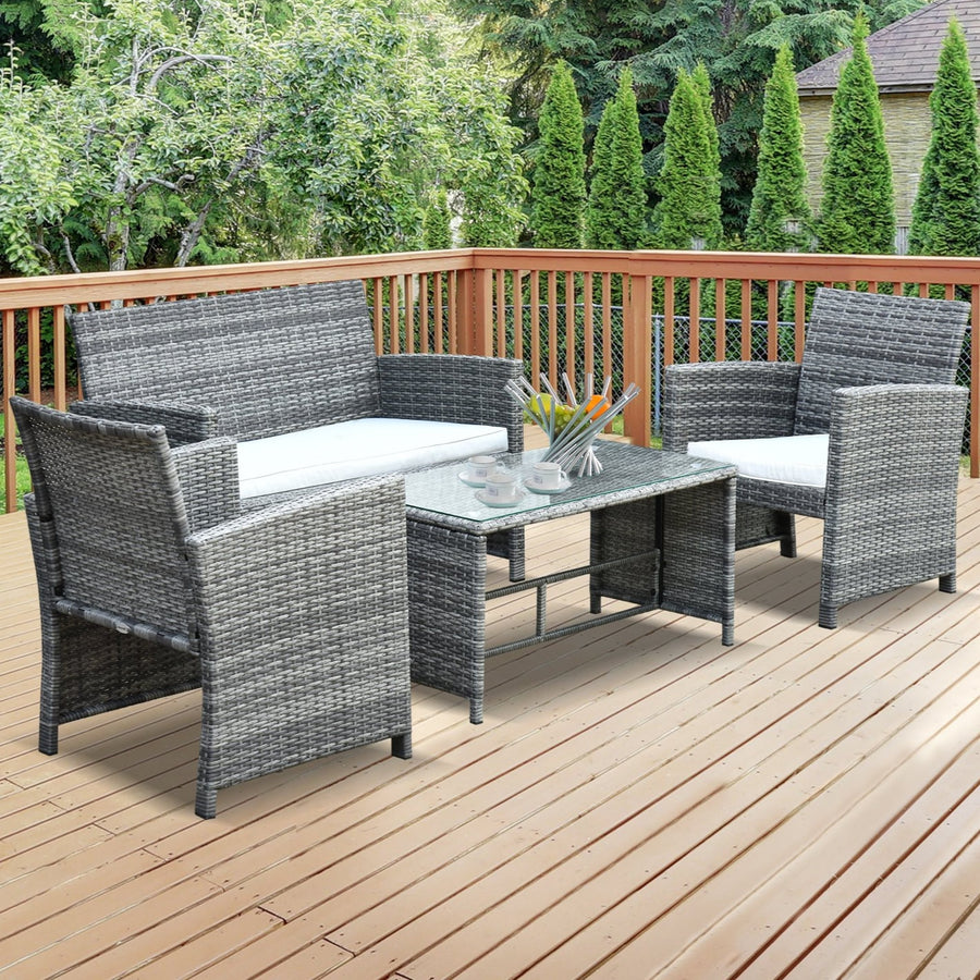 Lounge outdoors in comfort this summer with this 4-piece, PE rattan furniture set!