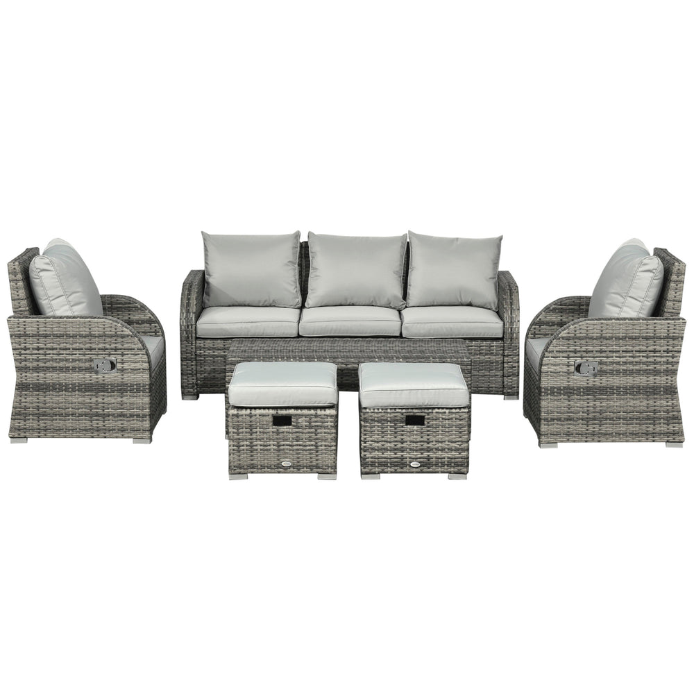 ● 1x 3-seater sofa, 2x recliner sofas, 2x footrests, and 1x coffee table