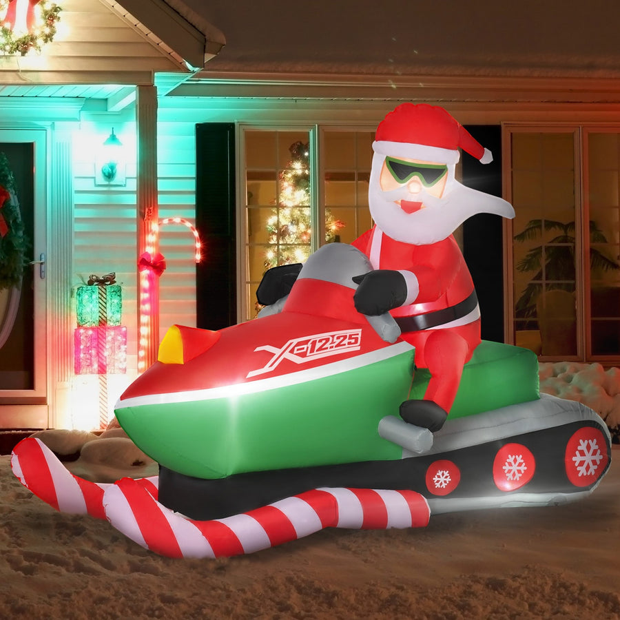 This fun, Santa on a snowmobile inflatable will make a perfect decoration choice this holiday season!