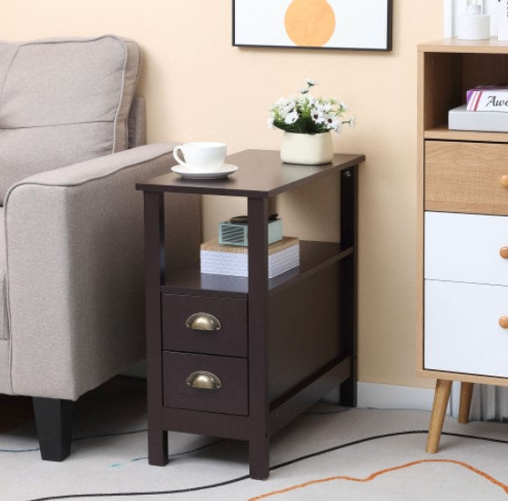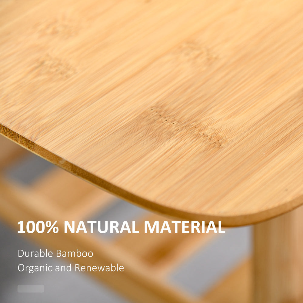 This minimalist natural bamboo coffee table has extra storage with its two-tier design!